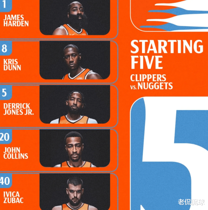 赛前,美媒ESPN预测了本场比赛的最新胜率,快船胜率仅有33.0% ,掘金胜率则高达67.0%,优势明显。今日比赛,首发阵容方面,快船队这边,伦纳德和比尔均缺战,主帅泰伦-卢排出的最新首发五人组为:詹姆斯-哈登、克里斯-邓恩、小德里克-琼斯、约翰-科林斯和伊维察-祖巴茨。;掘金队这边,首发阵容则为:贾马尔-默里、克里斯蒂安-布劳恩、卡梅伦-约翰逊、阿龙-戈登和尼古拉-约基奇。